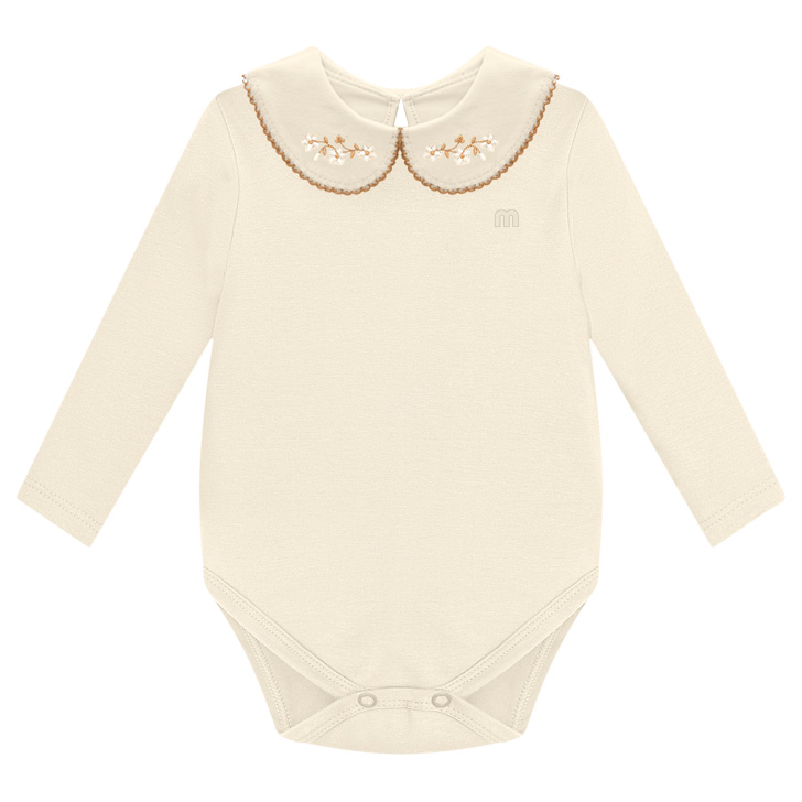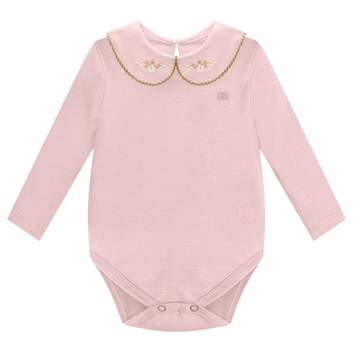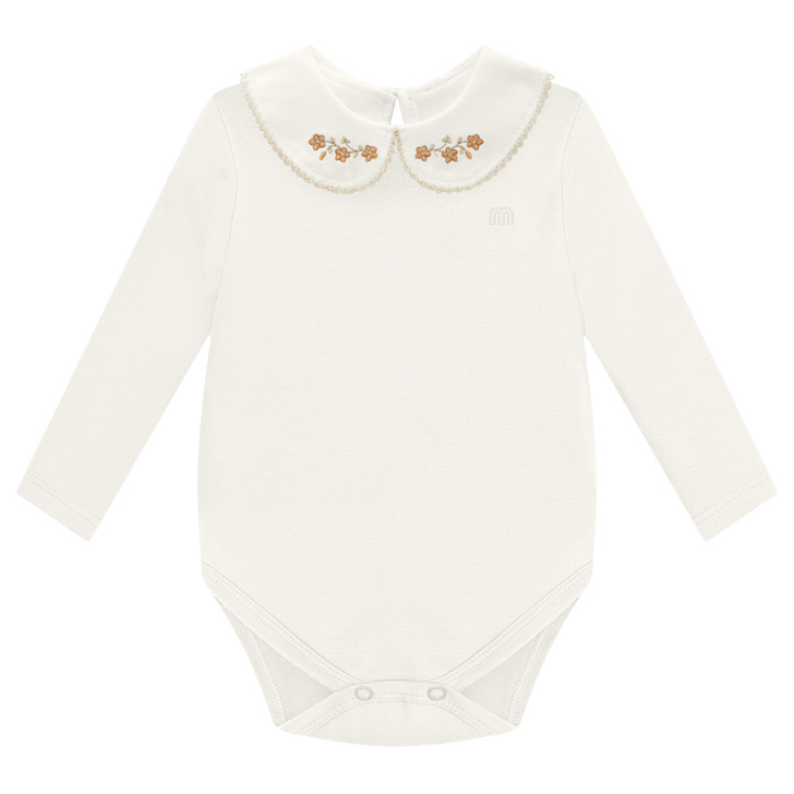 Body Milon Bebê Feminino Manga Longa com Gola Bordada (Ref: 2001554)