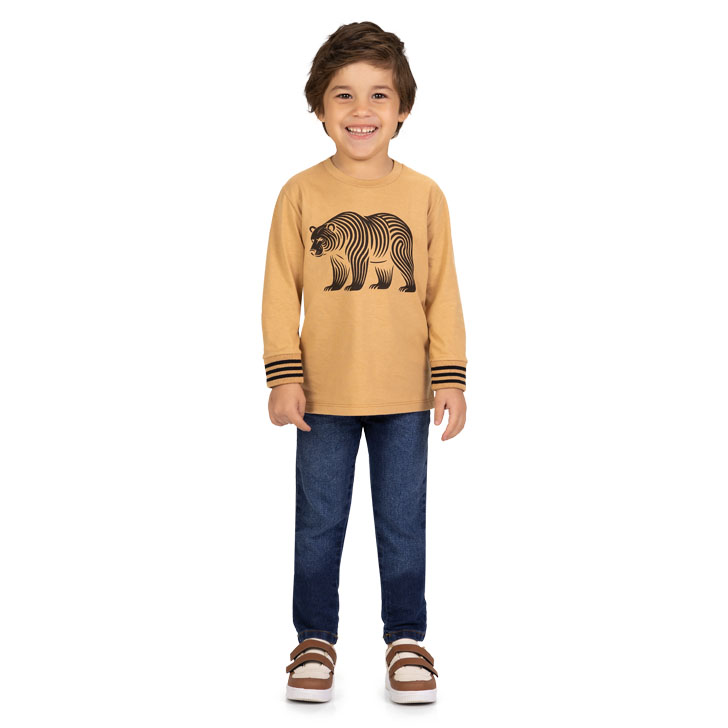 Esta camiseta de manga longa foi desenhada para rapazes que precisam de conforto enquanto exploram o mundo. Com a qualidade reconhecida da Kyly, a peça oferece um ajuste perfeito e um toque suave, garantindo que o seu filho esteja bem vestido e à vontade em qualquer ocasião casual.
