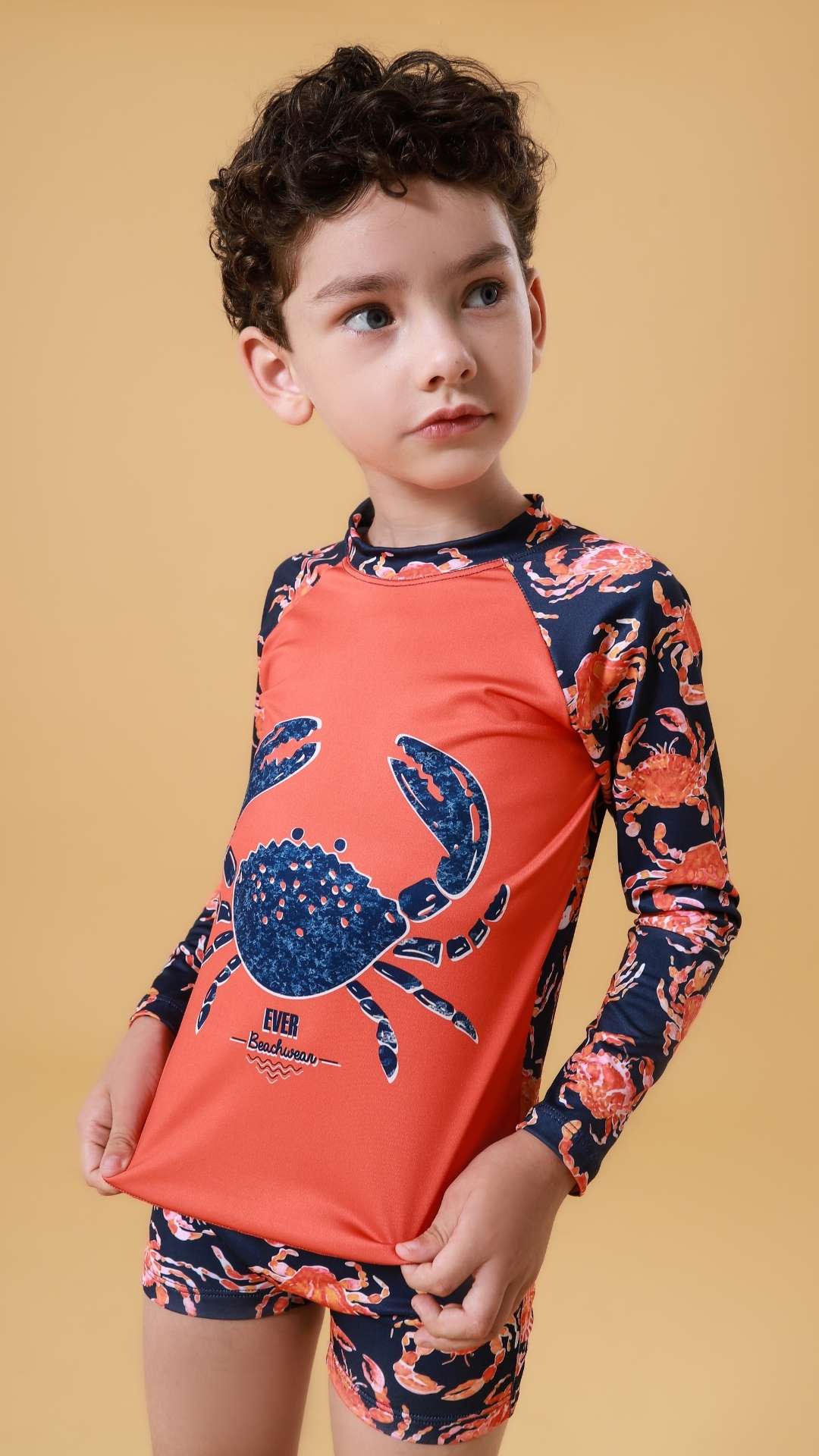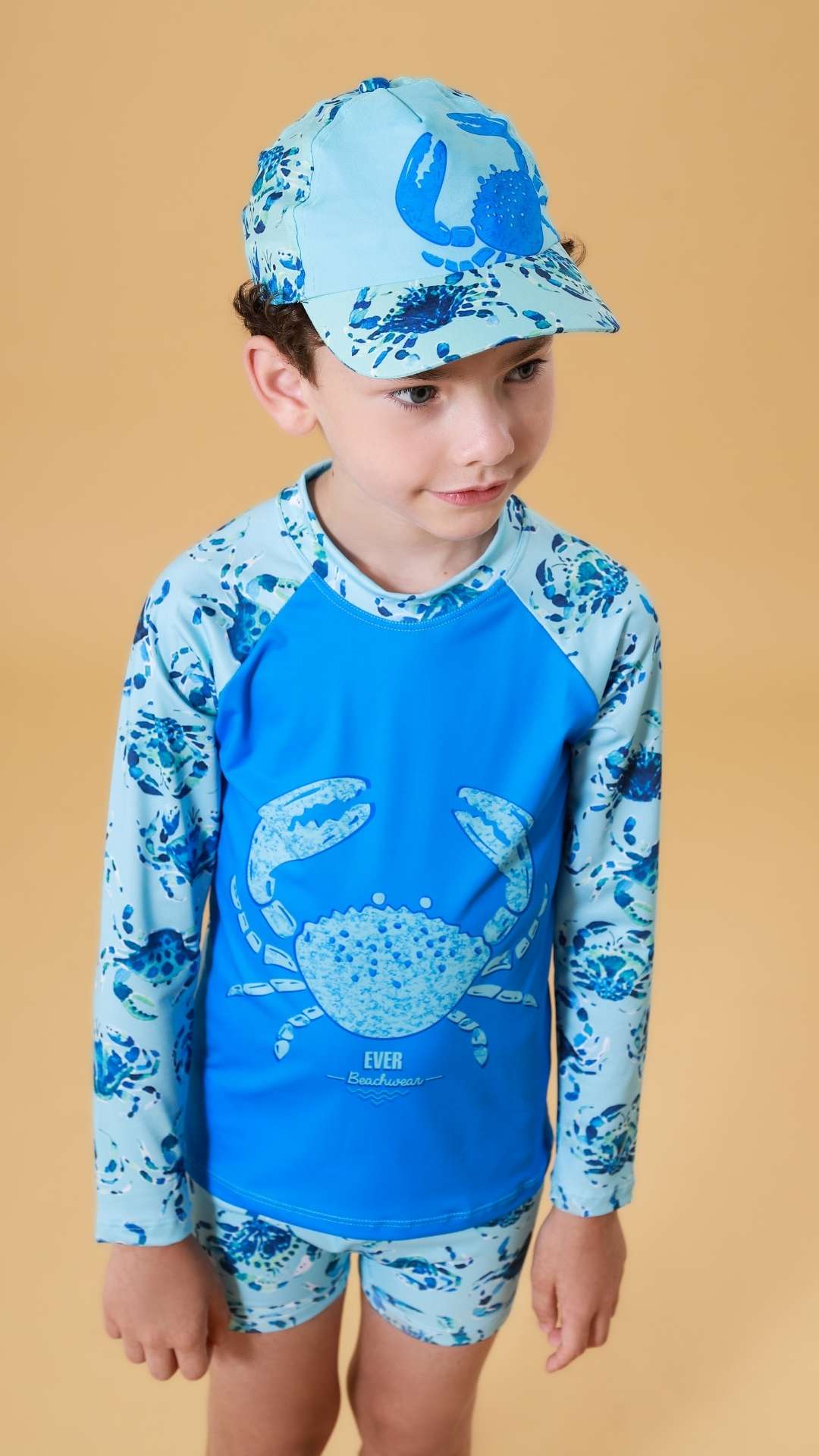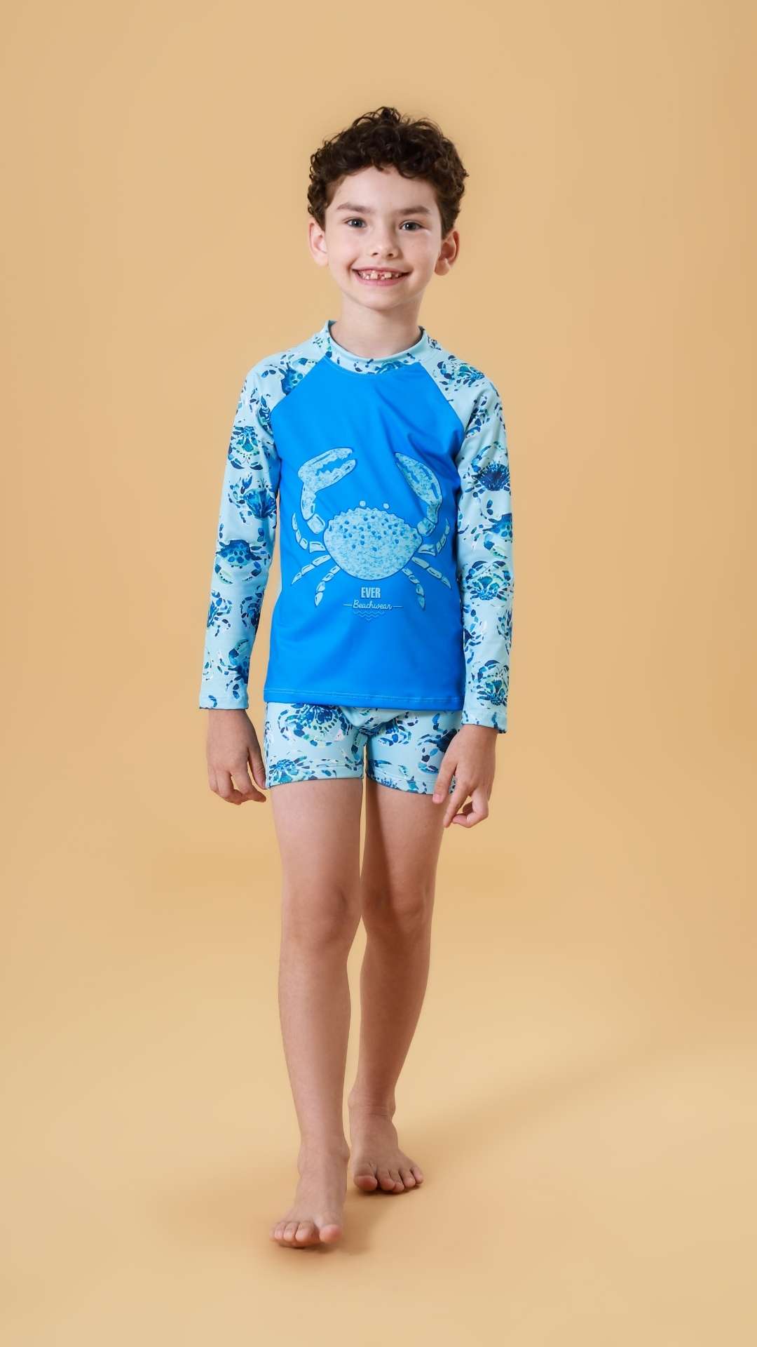 O Conjunto Everly (Referência 64110) é o aliado perfeito para os dias de sol intenso. Com uma estampa de siri super divertida e colorida, ele garante que os pequenos fiquem protegidos e confortáveis, seja construindo castelos de areia ou aprendendo a nadar.