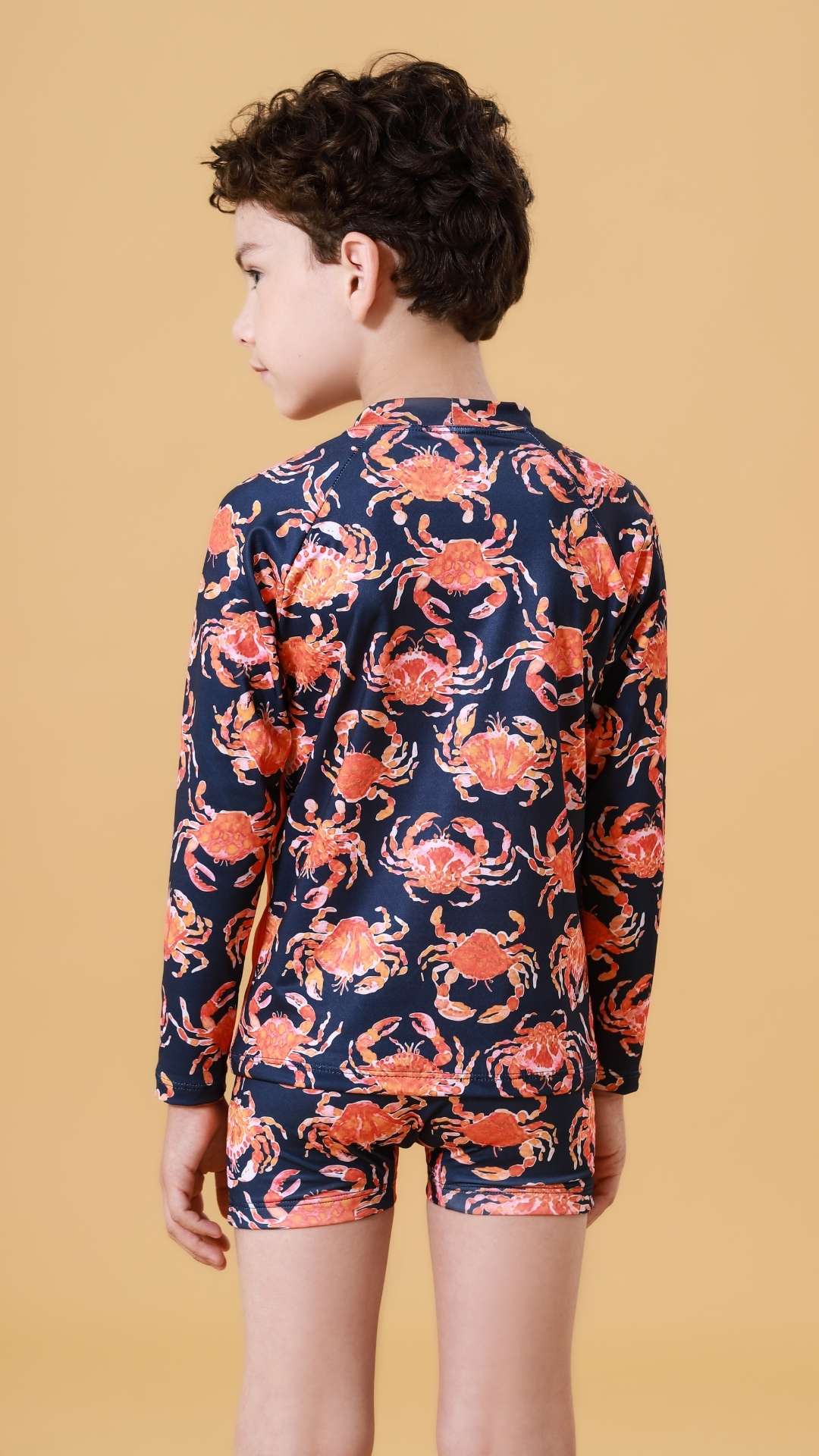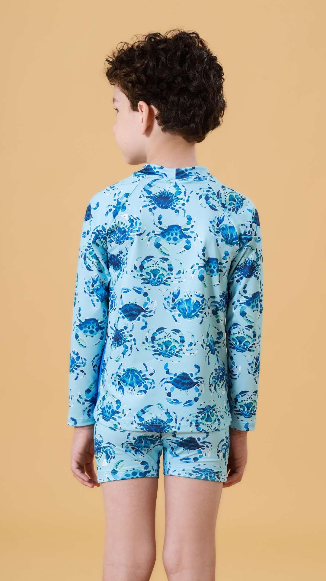 Por que este conjunto é um sucesso na Colmeia Kids? A estampa de siri é um clássico da moda praia que nunca sai de moda e agrada muito às crianças pequenas. Para os pais, a tranquilidade de saber que os ombros e braços estão protegidos do sol é o maior diferencial, tornando este conjunto um item indispensável na mala de viagem.