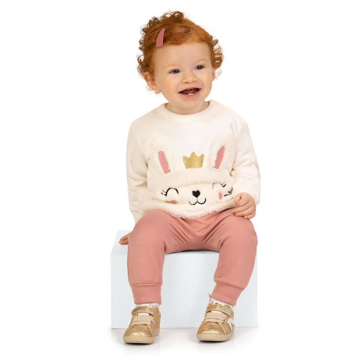 Uma opção repleta de charme e conforto para as pequenas na Colmeia Kids. Este conjunto da Kyly (tamanhos 03 a 18 meses) é perfeito para os dias de meia-estação, trazendo uma combinação de tecidos que garante proteção e liberdade de movimentos para a sua bebê.