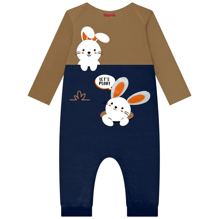 Macacão Kyly Bebê Masculino Manga Longa Coelhinhos (Ref: 1001486)