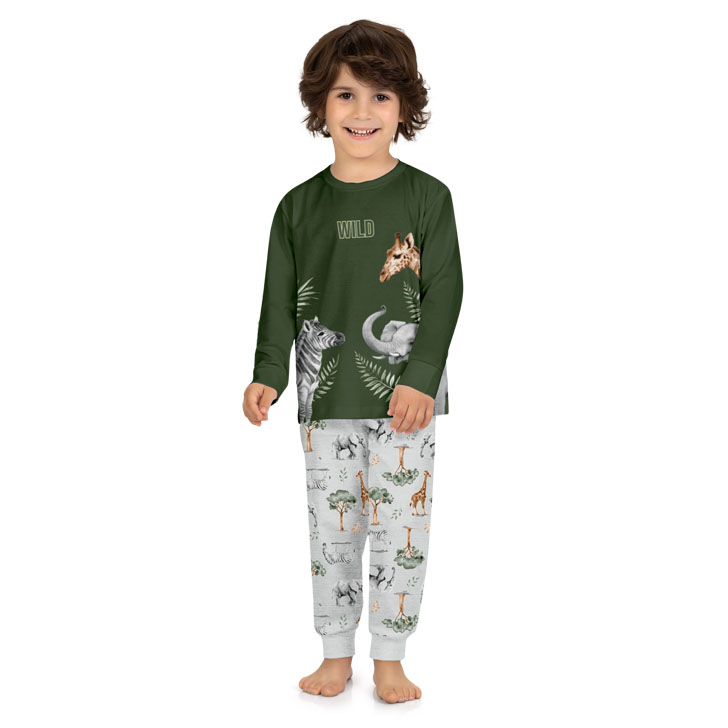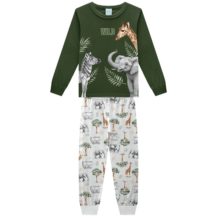 Noites repletas de aventura e conforto para os meninos na Colmeia Kids. Este pijama Kyly destaca-se pelas estampas divertidas (como o tema Safari/Bichinhos) e pelo acabamento que brilha no escuro, tornando a hora de dormir muito mais lúdica.