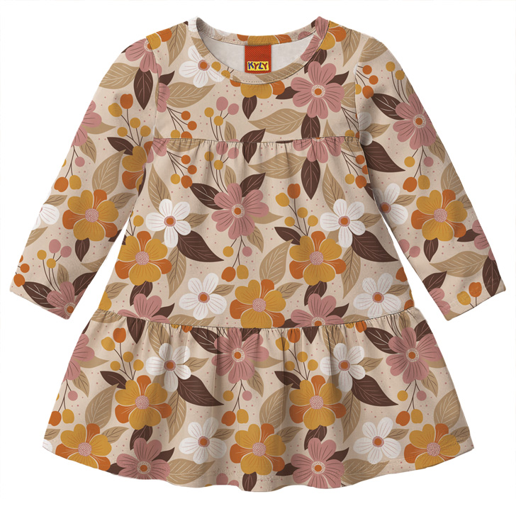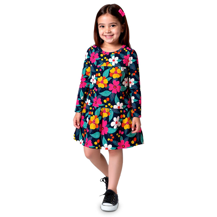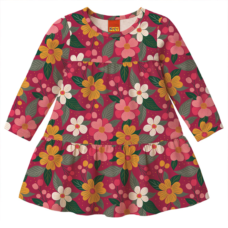 Delicadeza e conforto para os dias mais frescos na Colmeia Kids. Este vestido da Kyly é a escolha ideal para meninas (tamanhos 04 ao 08) que procuram um visual romântico e alegre, sem abrir mão do bem-estar.
